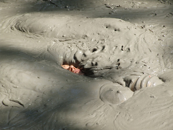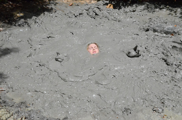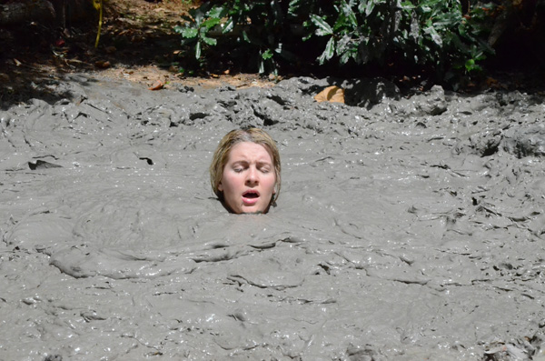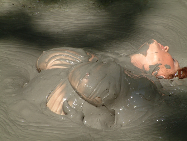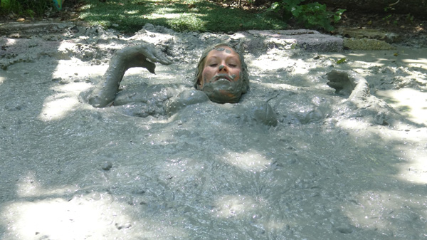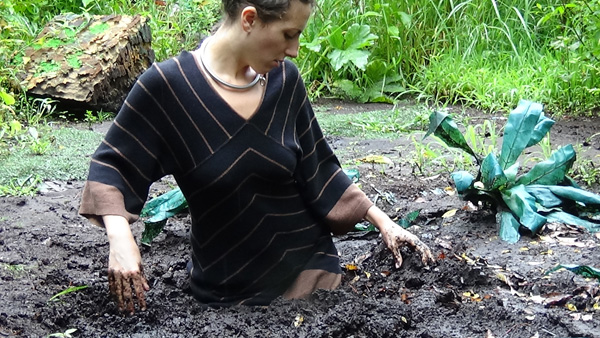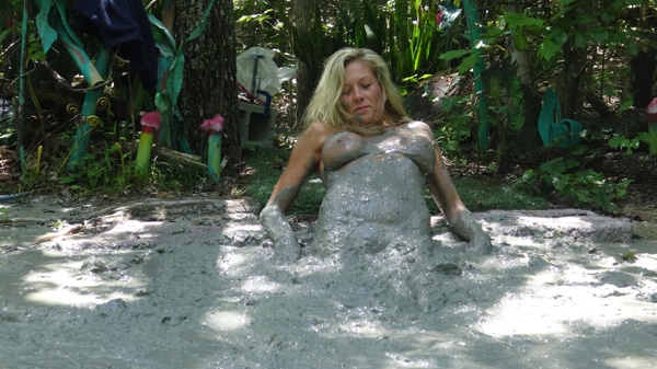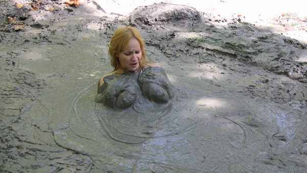 Kennedy performs her version of a muddy webcam routine. A muddy webcam routine is a more or less simultaneous strip tease and sink in deep mud. This one is in the clay.