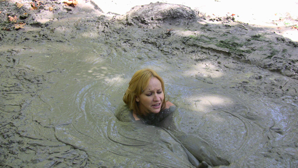 Whenever there is a new Moon, the tribe knows it must be prepared to save the sun. If the Moon is attacked and starts to be eaten then they must have a virgin ready to sacrifice to the nearby, bubbling, volcanic mud pot. As the scene opens NormaGee is tied to a tree next to the pit. She struggles but knows a sacrifice is only necessary once in a while. Then it begins to darken. She panics. She is rushed, untied and shoved in, all at once. She struggles in terror for a while but when she is splashed by mud tossed up by a bubble her reaction changes. After a few more mud bursts she is completely aroused. That does not save her from going under but it does make the experience one of erotic pleasure.