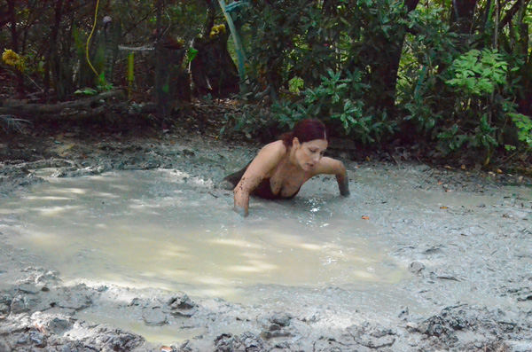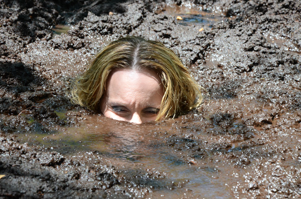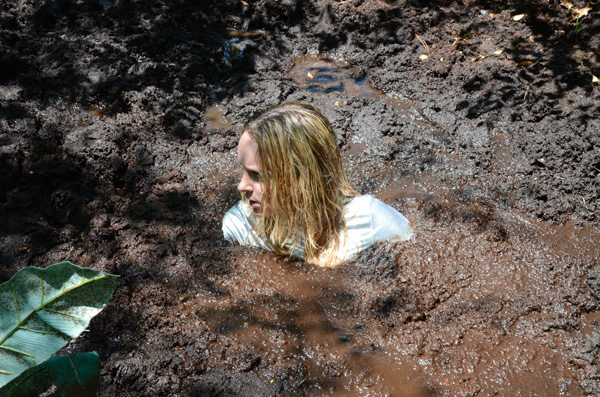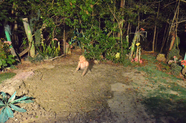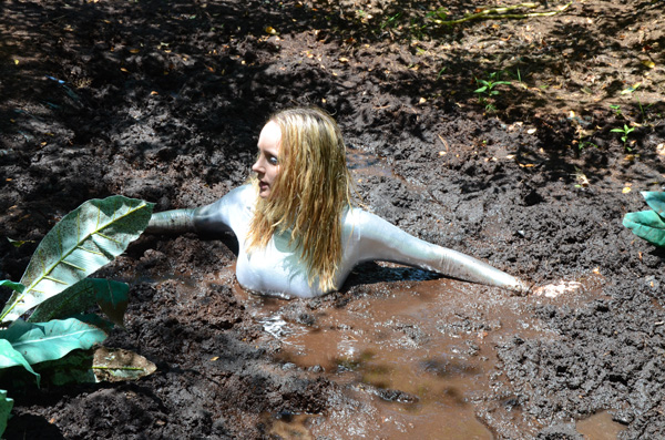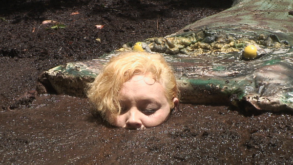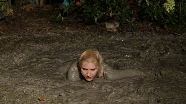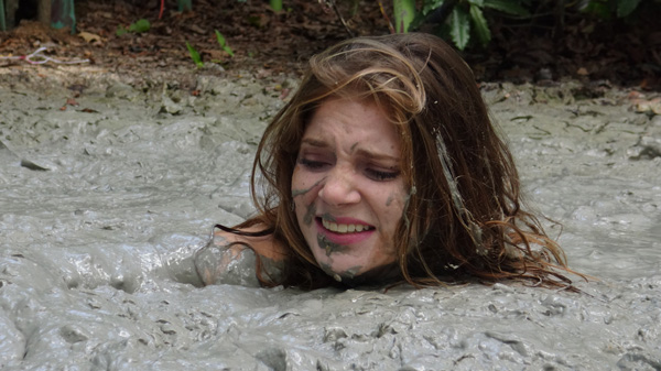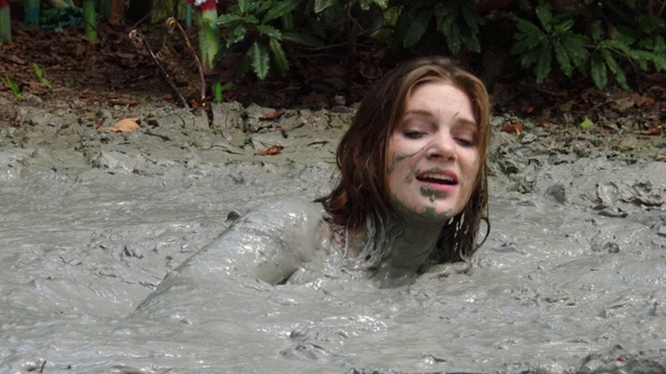 Madellin comes out of a rural bar, very drunk. They have taken away her keys so she tries to walk home through the forest. Several hours later, when it has gotten dark, she encounters a muddy spot. The muddy spot is, of course, quicksand, and she is far too intoxicated to deal with it. The quicksand wins. This was Madellin's first scene to be filmed, though not the first one released.