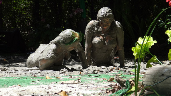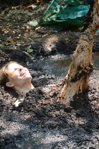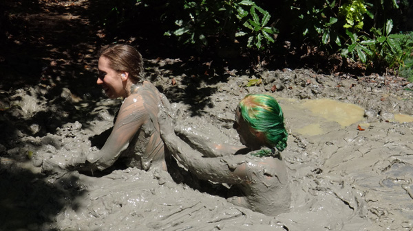 Samantha and LiiLii have a major problem with ants inside their house. And they are out of lotion to treat the bites they are getting. LiiLii, however, heard somewhere that clay mud is basically the same thing that is in the lotion, AND she knows where there is some. Arriving at the mud pit they strip to the waist and climb in for a nice wallow. In the end they climb out and decide to call an exterminator.