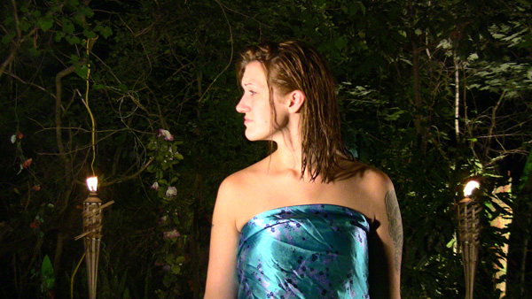 Athena has been caught by a primitive tribe and is about to be executed by being forced backwards into quicksand. With the drums beating, she is surprised as her kimono is ripped away. Then her hands are pulled out to the sides with ropes and those are used to cause her to fall backwards into the mire. Strangely, however, Athena seems quite aroused and delighted by the whole thing. Perhaps this is a dream?