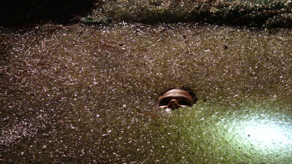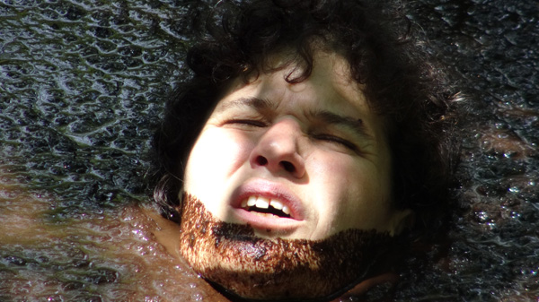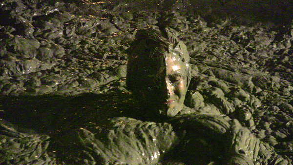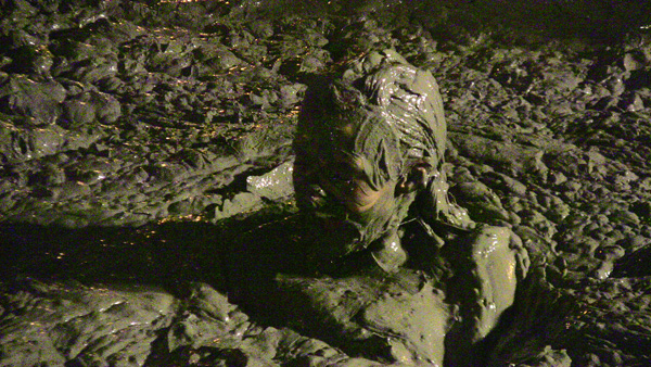 Persephone has been condemned to death. When they tell her that the string tied between her wrist and a small tree is her "spot" she is quite baffled. Then when they add that as a prisoner condemned to the death penalty she is free to wander off 'any time she is ready,' she thinks they must be completely incompetent. Obviously she wanders off right away and it is not long before she is in quicksand. It never really dawns on her what they meant by "when she is ready." This scene also features a very nice, slow submergence.
