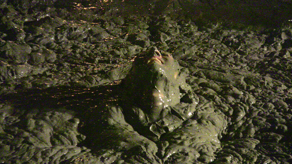 Kindle is perplexed and embarrassed by major wardrobe malfunctions while at the office, especially when her boss, Mr. Fred, walks in on her while her top is completely missing,... and doesn't notice. When she realizes she is dreaming she tells off Mr Fred and heads outside to find a mudpit. After a rather lengthy wallow she is startled again as Mr Fred discovers her. He does not fire her, however. Instead he tells her she was right when she said he is an idiot, doubles her salary, and gives her ten days off. After he leaves she extends her wallow a bit, submerges, and then comes up and crawls out.