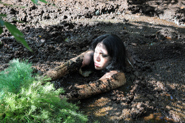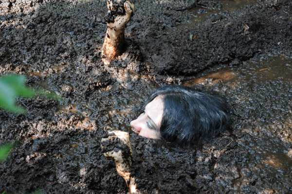 Samantha is closely pursued by enemies, but she knows a trick. (Or thinks she knows a trick). Coming to a peat bog she goes right in, covers herself with some convenient plants, and waits as her pursuer passes by. Now she has to get out of the bog. Will she make it? Probably not.