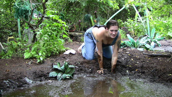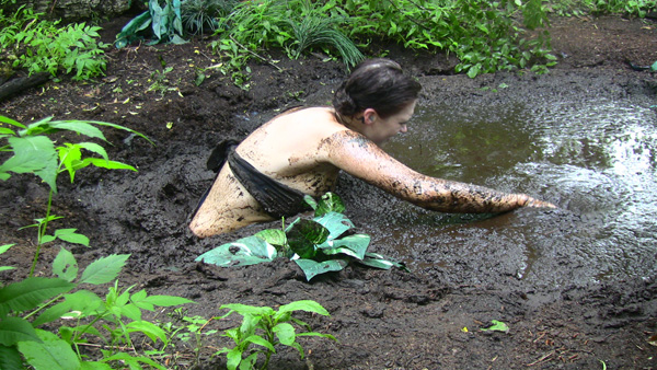The scene starts out just after dark as Karma cautiously approaches a chicken-wire fence by flashlight and crawls under it. She is sneaking in to a place she knows there is a deep mud pit. She arrives at the pit, strips to a bikini bottom, and gets in. She then enjoys a lengthy wallow, has three orgasmic submersions, and finally crawls out. Members here who are really doers rather than watchers ought to enjoy this one as it bears some likely resemblance to what they do, especially those who sneak in to quarries and similar locations that are technically off limits.