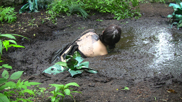The scene begins with Angelique arriving at the office of Dr. Fredericksburg, a hypnotist. She explains that she has a phobio of getting dirty, and especially of being in mud. He hypnotizes her to plant some subliminal messages to the effect that she likes getting dirty and being in mud, even in deep mud. He goes on the explain that on her second visit he will create a trigger that will kick in if and when she might encounter mud. At that moment, however, Dr. Fredericksburg drops dead on the floor. Angelique rushes to try to get help but its a very rural area and there is nothing but forest. Then her arm touches something, making it dirty, and she reacts with pleasure. Soon she is looking for mud. She finds it, of course, and ends up removing most of her clothes and getting into the peat bog. She gets deeper and deeper, finding it very pleasurable. Toward the end she submerges herself and then comes up and crawls out.