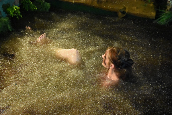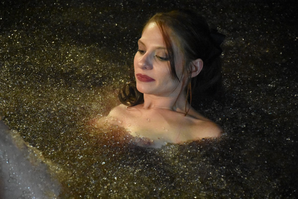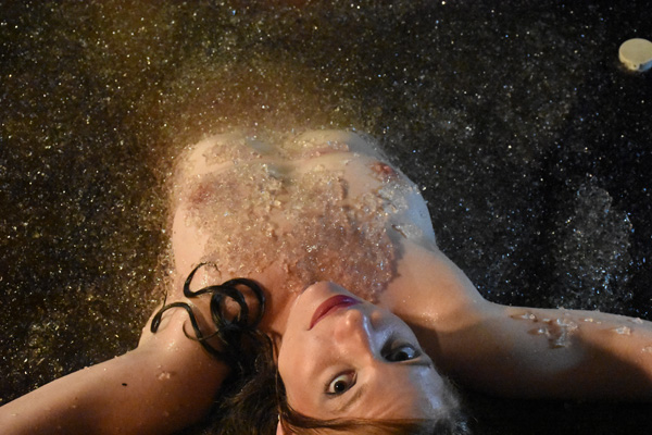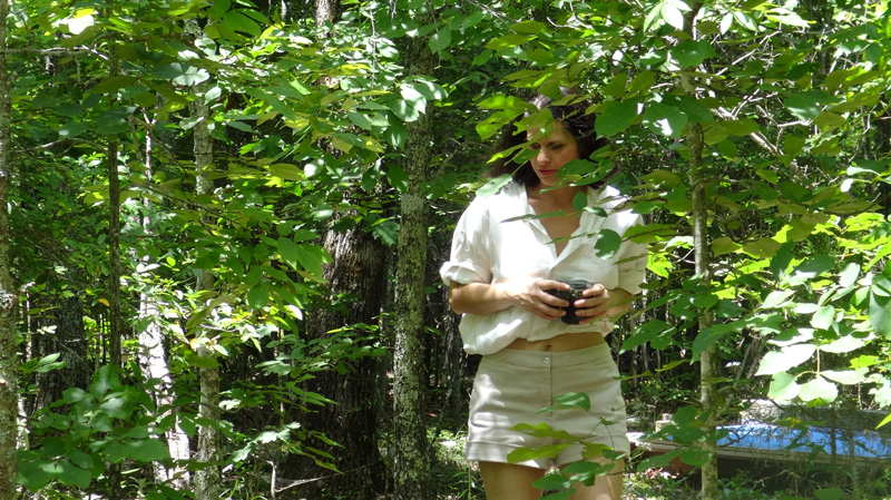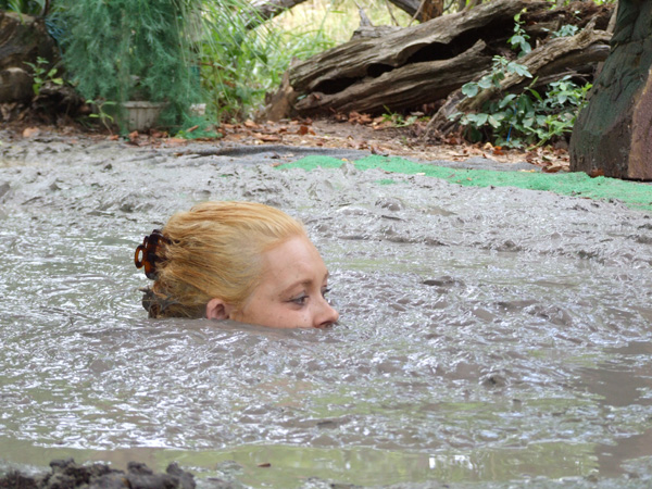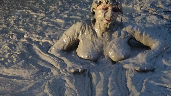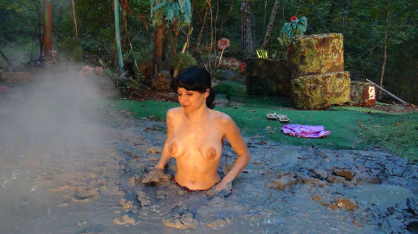 Bonnie's first shoot has just concluded successfully. During a post shoot celebration she says she had a great time but is disappointed she did not get to use the new swamp pit. Fred agrees, saying it just is not quite ready. After Fred excuses himself and goes to bed, however, she decides she is NOT going to miss trying the new pit. She heads out the door with a towel and flashlight and goes to the new pit. The rest of the scene is mostly a sort of voyeuristic view as she gets in, topless of course, and enjoys the sensations of the very exotic "mud". At the end she gets out quite quickly as a thunderstorm rapidly approaches.