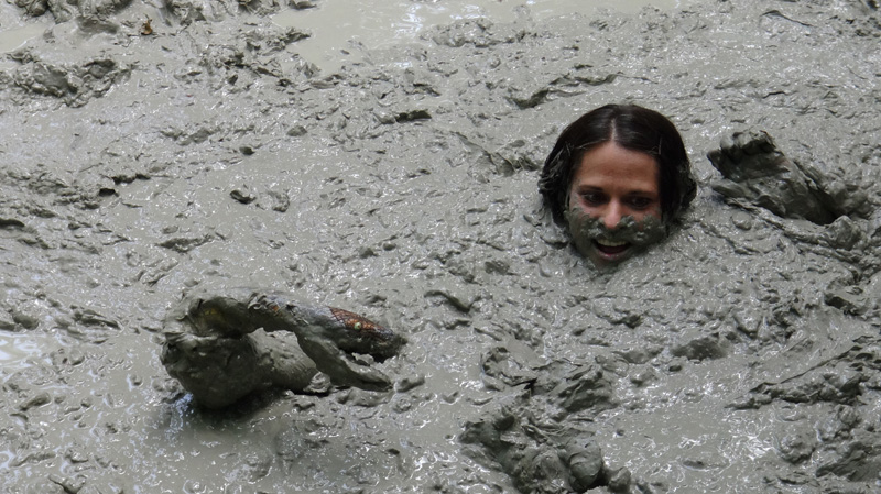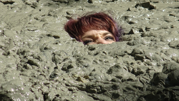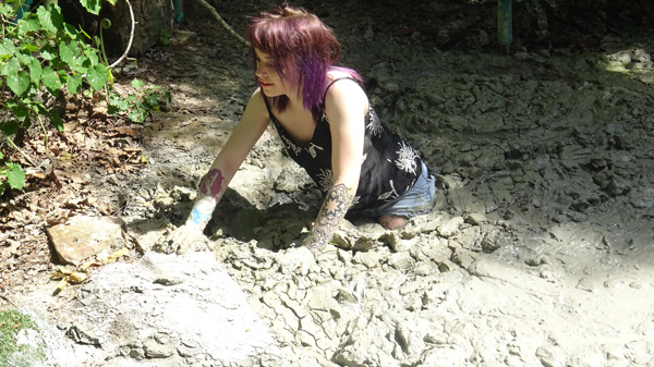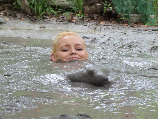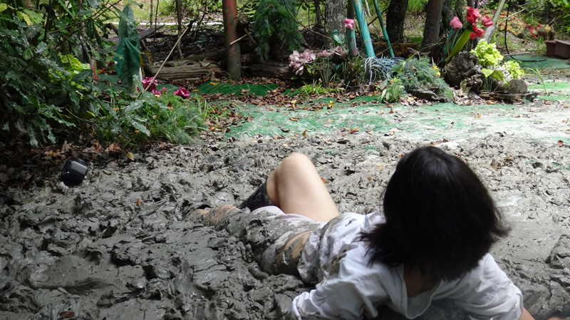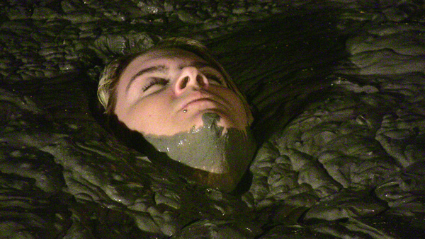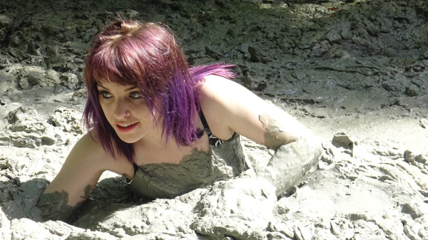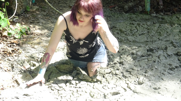 Hannah gets up from an afternoon nap to call in her cat. Her front door ends up locked behind her. She goes around to the back door but it is locked also. Then she retrieves the key hidden under a rock near her patio but when she turns around her house isn't there. Soon enough she realizes she is dreaming and decides she will head out into the woods where she will find a mud pit. Sure enough the mudpit is there. The rest of the scene is her very enjoyable sink n he mudpit, including three orgasmic submergences. (And two returns to the surface.)