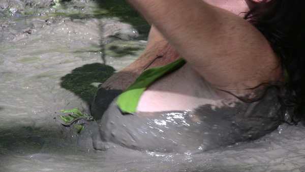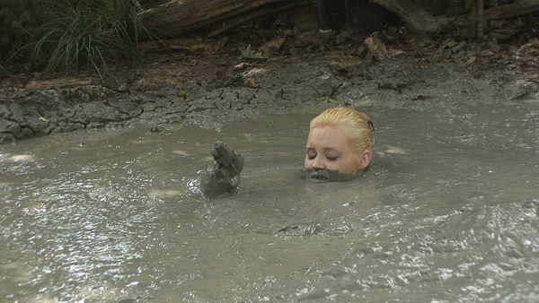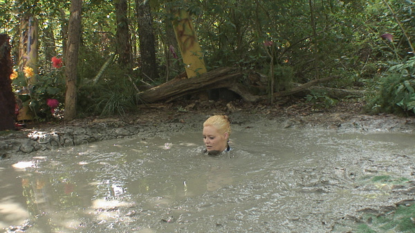 As this scene begins, Melissa arrives at the offices of Studio 588, which she has rented so she can visit the clay pit. She is greeted by Fred who checks her in, then she heads out the door. For this point on this rather long scene is pure heat. She pulls a wine bottle and glass from her robe and pours herself a glass. The rope comes off and she gets into the pit in a rather sexy outfit. Then she climbs out, strips naked and gets back in. The rest is impossible to describe except by using a lot of words that all mean "hot."