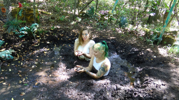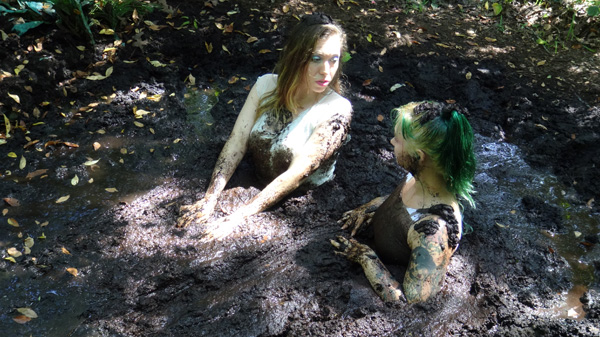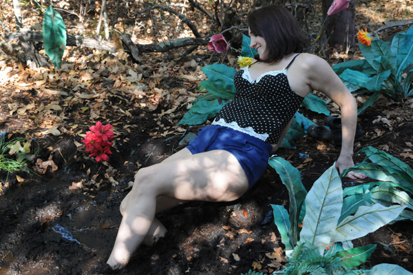 Karma is exploring a forested area looking for several species of very rare animals, such as the Brown-Striped Skunk. When she encounters a muddy spot she tries to move around its perimenter but slips in. Those who like seeing boots go into the mud will like this one and may appreciate that filming was somewhat difficult because Karma kept the boots on for the whole scene.