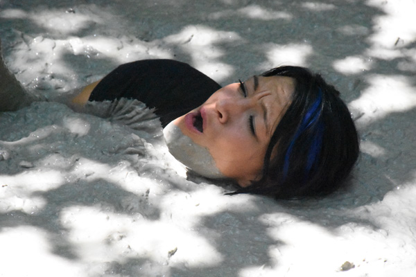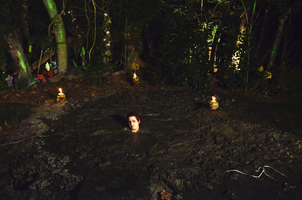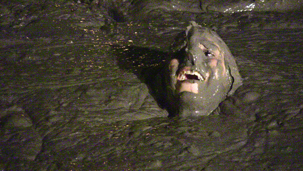 This is Nocturnal's version of Jungle Execution. As the scene opens she is standing with her back to a pit of quick clay as some sort of primitive executioner speaks some commands in mumbo jumbese. Suddenly her robe is pulled away leaving her topless. Then her arms are pulled out to the sides with ropes, and then she is forced to fall backwards into the mire. She is confused and frightened at first but then sees things in a different light (even though it is a night scene). The mire lets her up after one submergence but not after the second.