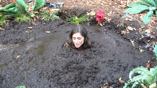 I suppose this one could be considered a sort of garden of Eden sort of thing. Hannah arrives at, enters, and enjoys a jungle clay pit before eventually crawling out. While enjoying the mud she briefly talks to some sort of cat that has wandered by, unseen by the camera, does a submergence for her own pleasure, and comments that some sounds suggest a couple of elephants nearby are being naughty. Very hot!