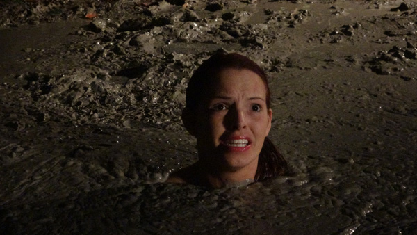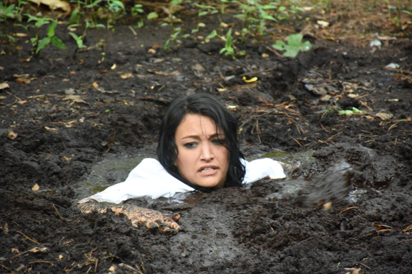 Stefani and Kindle rough up and rob a 104 year old man tottering along a trail. They are interrupted by the barking of dogs and run off. They separate to try to elude the dogs, but Kindle blunders into a clay bog. After she has gone under, Stefani blunders into a peat bog. We could call this Karma but that would imply a different actress. Fred588 plays the old man.