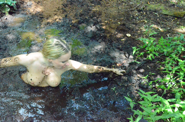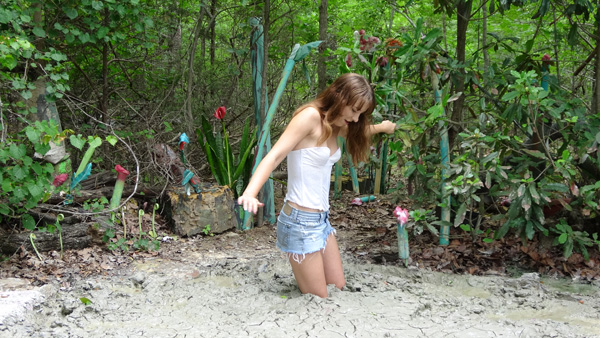 As this one opens, Brittani is alone of what seems to be a deserted island, the sole survivor of a shipwreck. She realizes the must try to cross to the other side where perhaps conditions might be better. We never find out about conditions on the far side, however, because there is quicksand in the interior. After blundering in to the boggy peat, Brittani tries removing her top to snag an overhead branch. She is successful at that but eventually the branch breaks. This scene also features a somewhat prolonged post-submergence struggle.