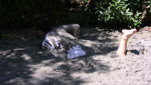 As this one begins, Chloe and Raina are very muddy but cleaning up. The last session of a shoot has just finished. As they know the way back to the house, Fred takes the cameras and goes back to the house, leaving them to clean up in privacy. As soon as he has gone, however, they get back in for a little more muddy fun. They have just that. Eventually Fred reappears, asking if they are alright. They try to claim they just fell in until Fred tells them its already pas 5 in the morning. They crawl out somewhat sheepishly.