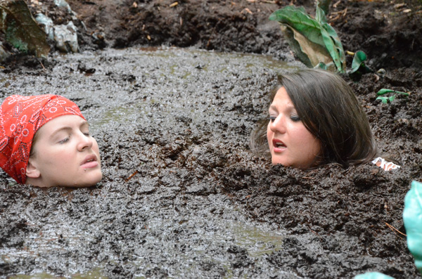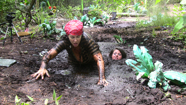 Rachelle is a construction worker on a house project but when she gets to the project there is no one else there. Its a hot day so she decides to extend her lunch break for the whole afternoon by a near by mud pit for a hot wallow.