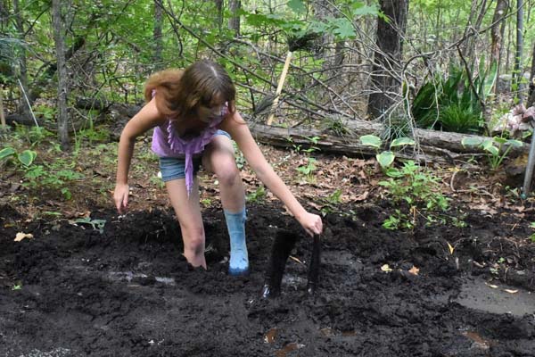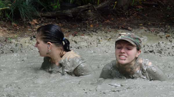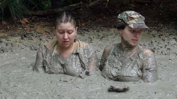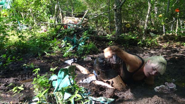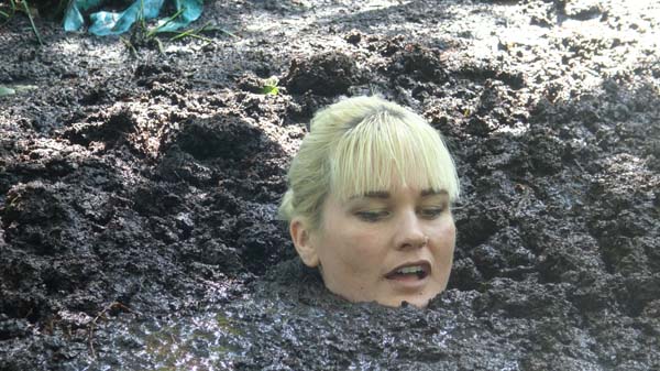 To become a member of the Touchtone club, Catt must complete an initiation. She must stay out in the forest, by herself, all night, nearly naked. The bugs attack. She tries walking to create a breeze. She walks faster. And faster. And blunders into a bog. She is panicked and quickly sinks to her neck. Then the panic turns to frustration as she stops sinking but is still stuck. She figures out how to move and crawls out. The bugs re back. She gets back in and has a terrific night.