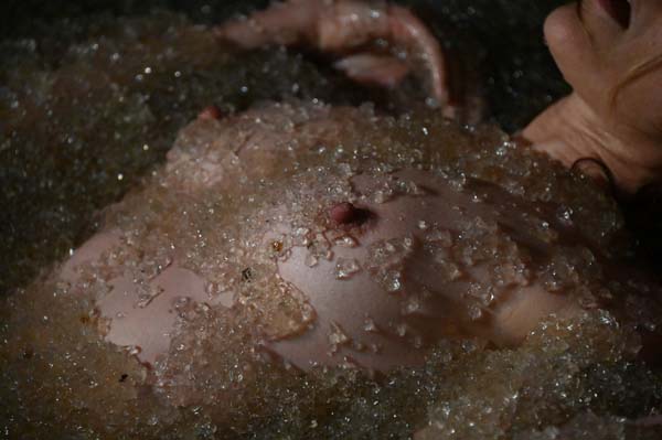 The shoot is over and being celebrated over glasses of wine. Fred says he is tired and goes to bed. Blu, however, has not had enough and sneaks out to enjoy the mud pit one more time.