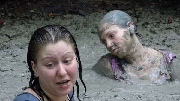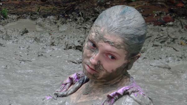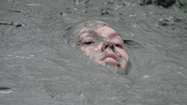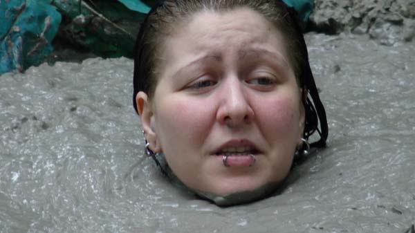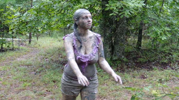 After the final scene of a shoot has been filed, Fred heads up to headquarters with the cameras while Bella finished cleaning up. But she has not had enough and gets back in the mud. She is surprised when returns and tries to say she just fell in, but is just a bit embarrassed when Fred informs her it is four in the morning.