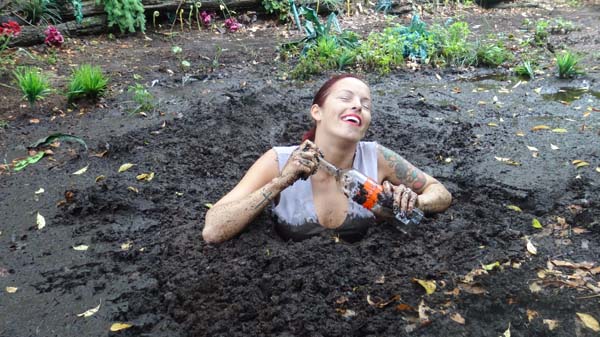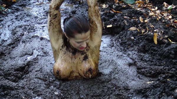 Visting Psychic World JungleLand, Kennedy has wandered into PirateLand. She is captured by the head pirate and his perverted sidekick Clem. They do not have a plank for her to walk - because they do not have a ship,.... or an ocean - but they do have a pit of quicksand. They offer her a series of last requests, which she uses to remove most of her clothing, and to have her hands tied behind her back, and then in she goes.