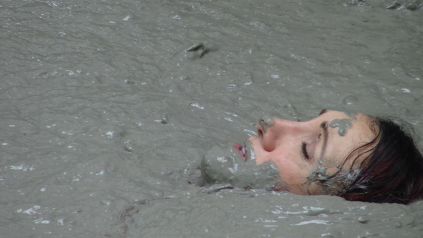 Athena wants to join a sorority. The intiation ritual, she is told, is to stay out all night in the forest nearly naked. As soon as she is left alone the mosquitos begin to attack. She falls into a mud bog trying to escape the bugs. Terrified at first, her emotion changes to frustration when she realizes she is no longer sinking but is quite stuck. Then she figures out how to move around and crawls out. The bugs return, so she gets back in and spends the night having a pretty good time in the mud.