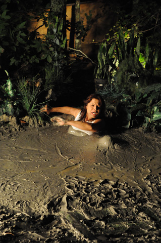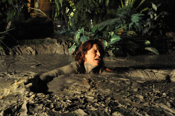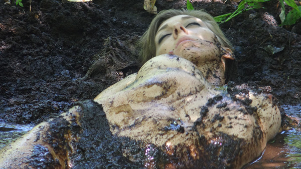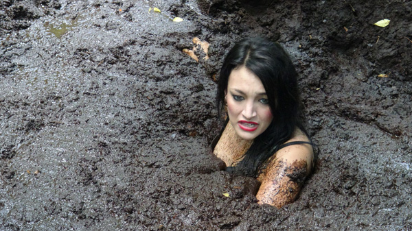 This scene begins in a car with Athena and Karma negotiating a "trick." No deal can be made, however, and Karma is left by the side of the road. Tryng to find her way home, Karma blunders into a peat bog and sinks. This scene is quite short at just under six minutes but features a good deal of intense struggling.