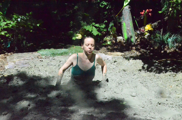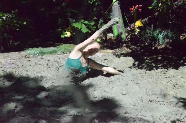 To be accepted as a full member of her island tribe, Kindle must under go a rite of passage. She must use a small dart to inject herself with a painful ant venom and other substances that will render her unconscious. When she regains consciousness she will discover herself in a life-threatening situation. being on the bold and adventuresome side, she stabs the dart into her own breast. When she awakens she is waist deep in a clay bog and suspended by her wrists. Gradually the vines stretch and she sinks deeper. One wrist comes free, then finally the other, leaving her shoulder deep and sinking. She keeps her head and is able to slowly slog to the side of the pit and escape. As she hauls herself out she wonders aloud if it might be possible to try it again.