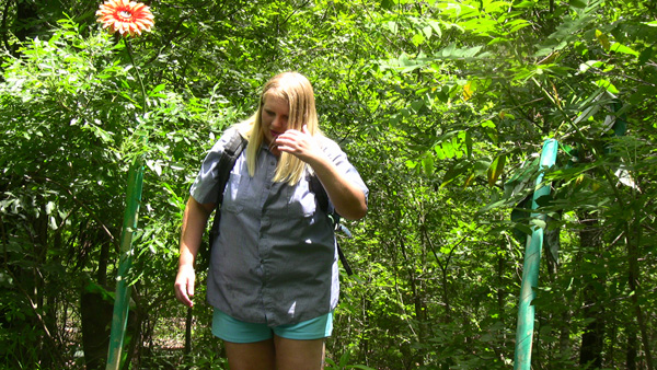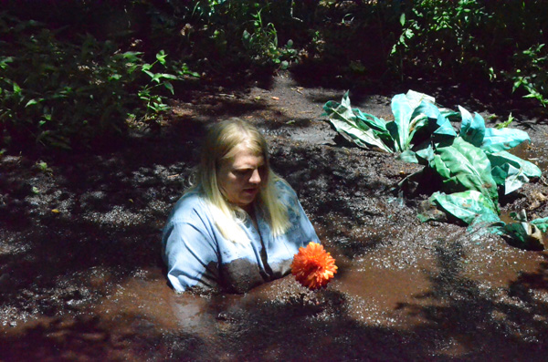 Rachelle plays a writer who tries to maintain the role of being crazy, while actually BING crazy. After fending off a call from her agent she goes to a nearby swamp to put into practice the theory that a writer should write about what they know. And its a story with a quicksand scene she is going to writer about. Unfortunately for us, her story will never be written.