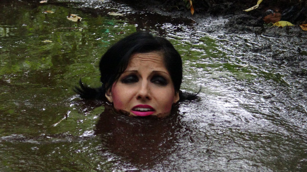 Stefani plays a non very bright photo model. Fred (voice only) plays a photographer who is really a serial killer by quicksand. After a few quick photos, she is led to a pair of peat bogs and told to pose in them. The first one proves to be not deep enough so she is quickly moved to the bigger and deeper one. The photographer just keeps telling her to sink a little deeper. She gets a bit alarmed when the bog reaches her chin but he says he will pull her out 'right after she goes under.' He doesn't.