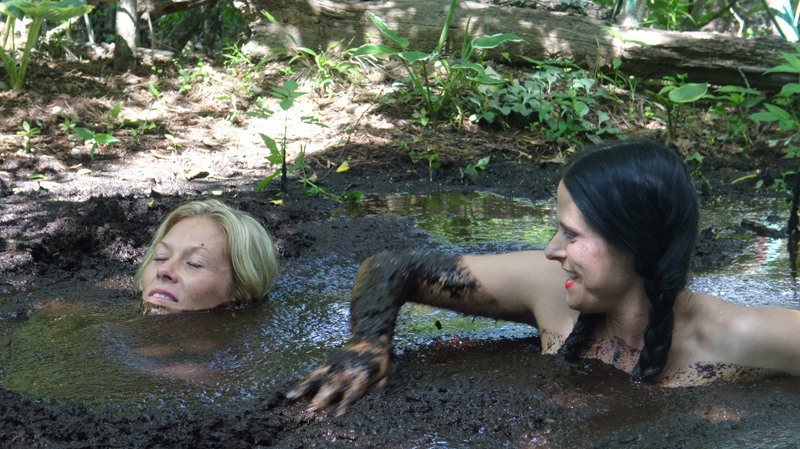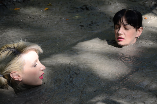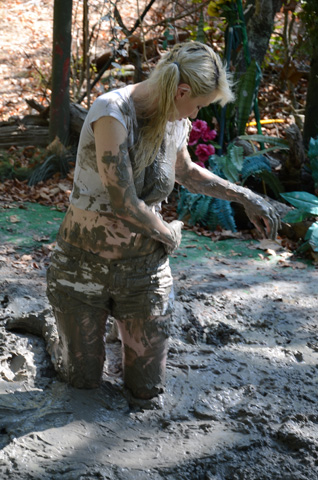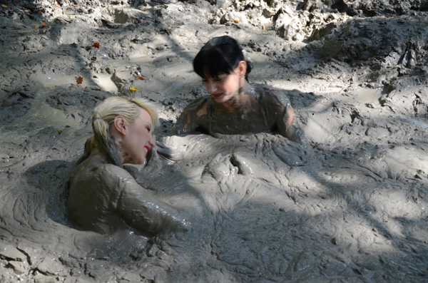 Nyxon and Natalie come out of the Sucking Toad Bar, Grill, and Troublespot extremely drunk and arguing with each other. They try to walk home as their keys have been taken away. The argument, including a hefty punch by Natalie, continues along the road. When they arrive at what appears to be a muddy puddle the argument becomes a mud fight. The fight continues in the mud, which is a good deal more than a puddle and they both eventually go under. A very well-done catfight scene.