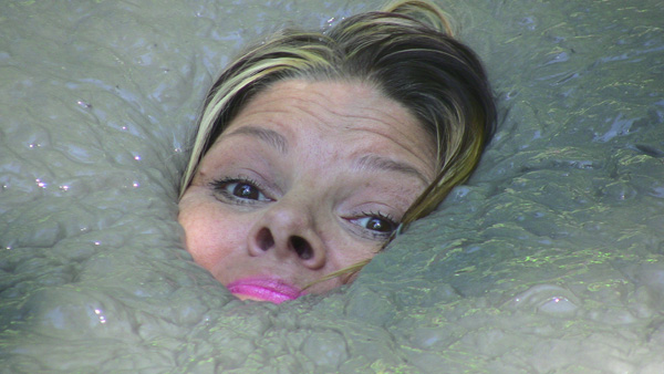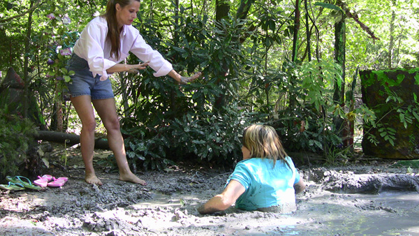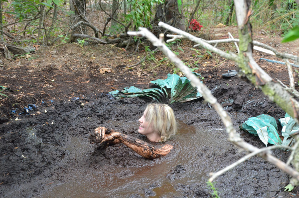 Kindle takes Stefani to her cabin in the woods for the weekend. They have to walk the last quarter mile or so. Kindle appears to blunder into a pit of mud. Stefani tries to help (removing her shirt to extend her reach) but ends up falling in herself. Oddly, Kindle does not seem nearly as frightened as Stefani. Just why is eventually explained when Steven, Kindle's husband, shows up. He tosses Kindle a rope and pulls her out but does not help Stefani. It turns out that Stefani is about their twentieth victim. After Stefani goes under, however, Kindle becomes number 21.