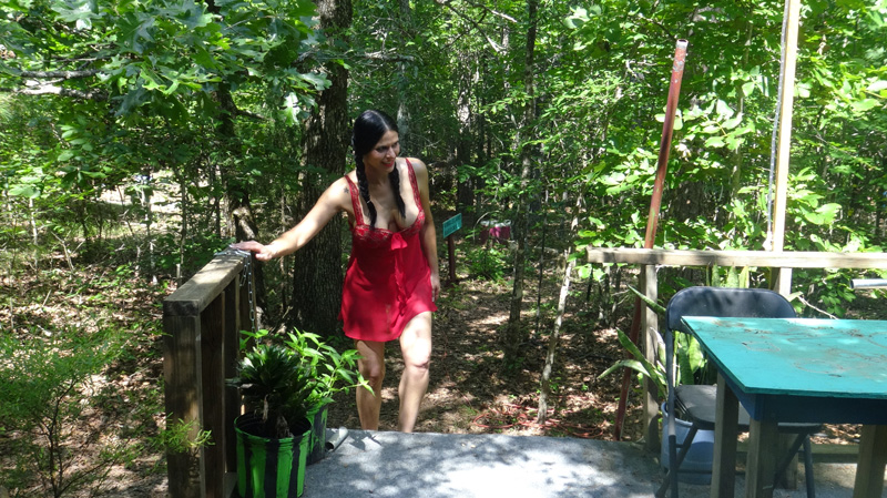 Elvira is serving a life sentence in a jungle prison. Taken on a walk into the jungle she is offered a chance to play the "prison escape game." She can simply leave the prison and go home free if she can survive for five nights in the jungle. She is even told that of about 75 previous prisoners who have played the game, one made it to the second night, but accepts the opportunity anyway. Soon she starts hearing all sorts of large and hungry animals. Fleeing the predators she encounters a muddy place. She tries to cross it but her foot becomes quite stuck. Realizing the mud is actually quicksand she decides that drowning in quicksand is better than being eaten alive by wolves, and she lets herself fall in. The rest of the scene is her slow sink., during which she is frightened but also somewhat turned on, all the way under.
