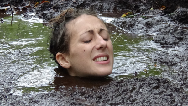 Kennedy performs her version of a muddy webcam routine. A muddy webcam routine is a more or less simultaneous strip tease and sink in deep mud. This one is in the clay.