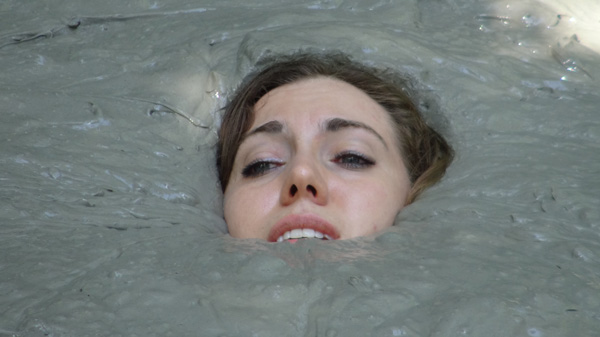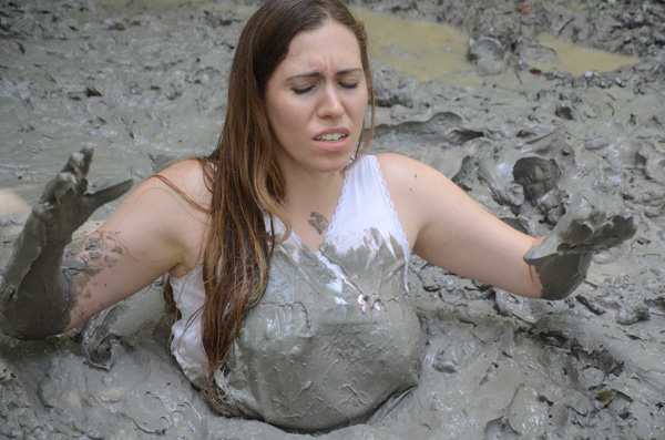 Madellin comes out of a rural bar, very drunk. They have taken away her keys so she tries to walk home through the forest. Several hours later, when it has gotten dark, she encounters a muddy spot. The muddy spot is, of course, quicksand, and she is far too intoxicated to deal with it. The quicksand wins. This was Madellin's first scene to be filmed, though not the first one released.