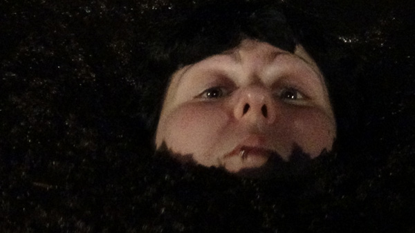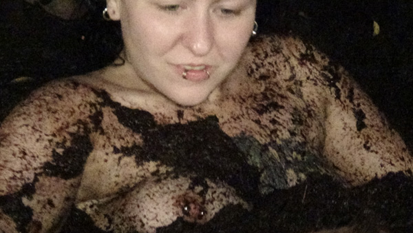 Bob, played by Hex Hypoxia, does her version of a simultaneous strip tease and sink at the Studio 588 peat pit.