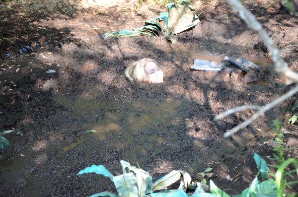 Natalie is a fetish photographer and Samantha is her model. They are in the Amazon jungle (the river not the on line retailer) for a shoot. Samantha is topless for obvious reasons - she's the model - but its not quite so obvious why Natalie is s well - but she is. Anyway they are moving around from place to place taking pictures. Natalie gets some exciting pictures on the edge of a peat bog but nothing untoward happens. Natalie gets some even better pictures when they encounter a patch of wet clay. All goes well until Samantha is asked to step back "just a bit more" and falls into mud that is much deeper than they thought. Samantha is stuck! It takes a while for Natalie to take things seriously but eventually she tries to help. Of course, she quickly falls in as well. Things do not end well for either.