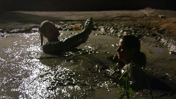 The scene starts out just after dark as Karma cautiously approaches a chicken-wire fence by flashlight and crawls under it. She is sneaking in to a place she knows there is a deep mud pit. She arrives at the pit, strips to a bikini bottom, and gets in. She then enjoys a lengthy wallow, has three orgasmic submersions, and finally crawls out. Members here who are really doers rather than watchers ought to enjoy this one as it bears some likely resemblance to what they do, especially those who sneak in to quarries and similar locations that are technically off limits.