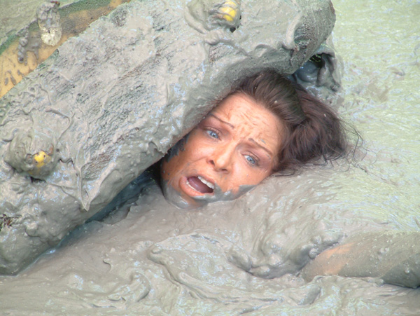 Angelique is searching for dinosaur bones. Her search ends when she spots one sticking up from a muddy place. The area has been marked off with yellow caution tape but that doesn't even slow her down. She works her way around the edges of the mud trying to get closer to the protruding bone but eventually slips in.She struggles with the bone, which is very stuck in the thick mud and eventually works it free, but ends up chest deep herself as a result. She then tries to get herself out but gradually just sinks deeper. It does not really dawn on her that she will be sinking under the surface until she is practically under the surface.