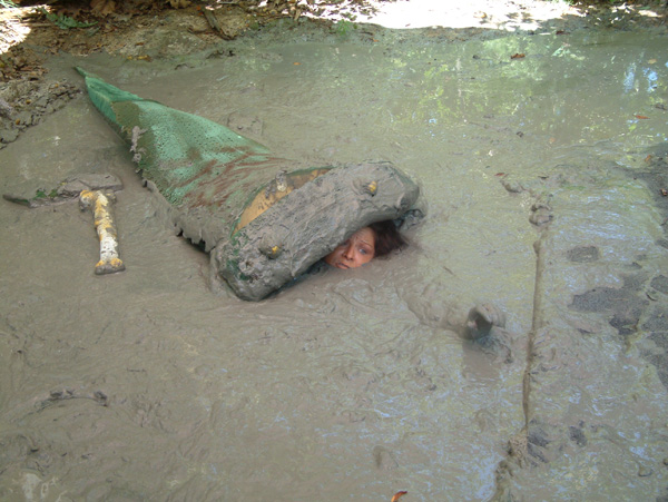 The scene starts out just after dark as Karma cautiously approaches a chicken-wire fence by flashlight and crawls under it. She is sneaking in to a place she knows there is a deep mud pit. She arrives at the pit, strips to a bikini bottom, and gets in. She then enjoys a lengthy wallow, has three orgasmic submersions, and finally crawls out. Members here who are really doers rather than watchers ought to enjoy this one as it bears some likely resemblance to what they do, especially those who sneak in to quarries and similar locations that are technically off limits.