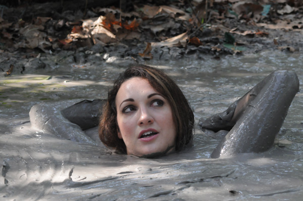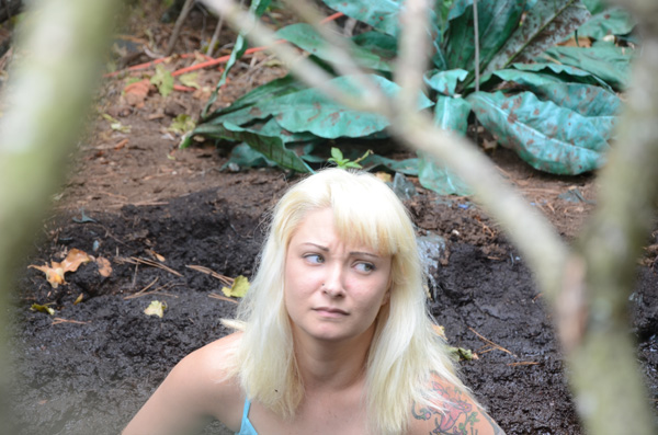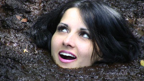 Blad is assisted by his accomplice Natalie in taking Nixon to a quicksand pit and sinking her. Natalie finds it all very arousing until Blad decides to sink her too.
