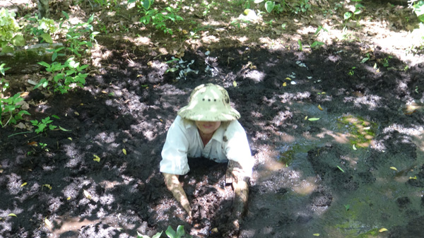 Brittani is jogger along a trail she has used a hundred times before. Suddenly she plunges into a deep pit of quick clay that was never there before. Maybe the construction work and rain a few weeks ago was involved. For a while she is terrified as she rapidly sinks to her neck. Then she stops sinking but is frustrated at being stuck. Then she realizes that if she moves slowly she can move quite easily and the mud becomes quite pleasurable. In the end she crawls out, vowing to come back in a day or so but after dark.