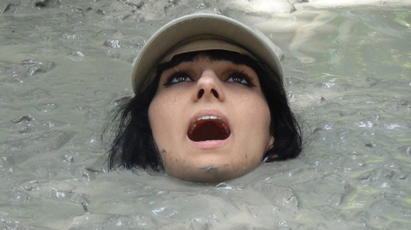 As the scene opens we find Hannah topless and tied to a tree with her arms above her head. She is, or was, a pirate leader but has been deposed and left there by her rebellious crew. She gets free of the tree but her hands are still tied together. Fearing her crew might return she runs for it. Soon she blunders into a clay bog. Slowly she sinks, eventually all the way. This scene is noteworthy for three things. First, a hot view of Hannah tied to a tree topless. Second, a running plunge entry that was followed perfectly by the camera. And third, a really spectacular final submergence.