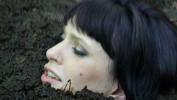 The scene starts with Stefani, on line to the quicksand community in a sort of two-way chat environment and asking how many people want her to do a scene in clay, peat, or cork, what she should wear and so on. The scene then transforms to her doing what was requested. She gets in, talking to her viewers about what they requested, what she is going to do, and how good the peat feels on such a hot day. When she was on line, her viewers requested lingerie as her outfit and that she do three submergences. She starts out in lingerie but takes off her top after a while, and in the end she does four submergences. Because it might be assumed that some of her viewers would be present for this sink, the sounds of their cameras has been intentionally left in.