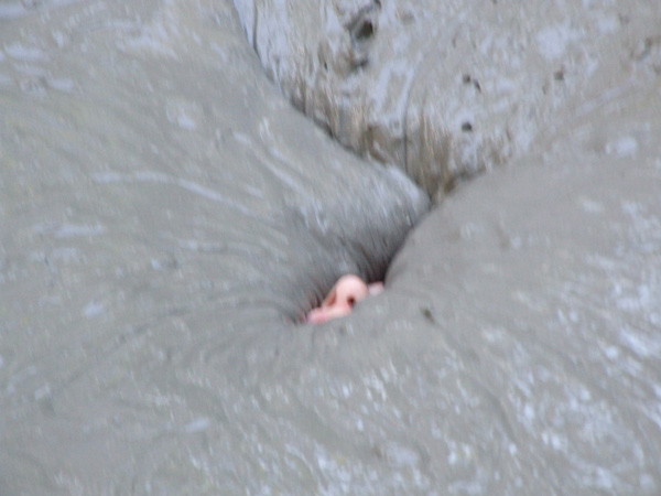 . I this scene which I think is best classified as avant garde, Brittani reads a poem about quicksand, slathers herself with wet clay, and then enters the pit to sink. Just before going under she delivers a line that will be meaningful to those of us who have been around the quicksand video scene long enough, but little to the members with lesser tenure here.