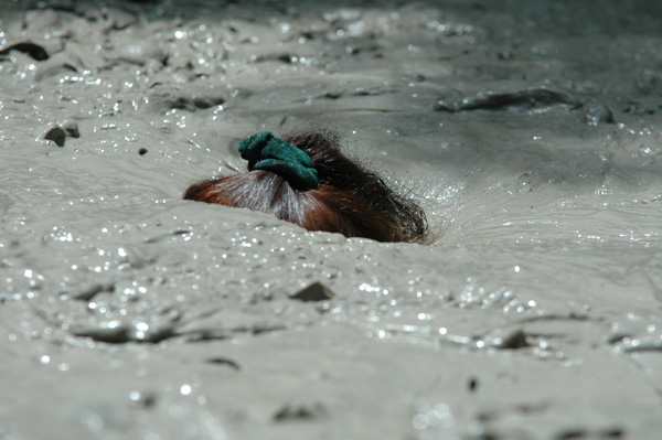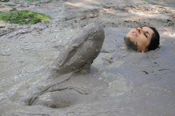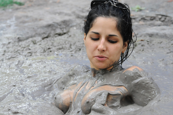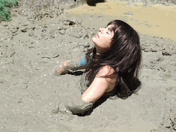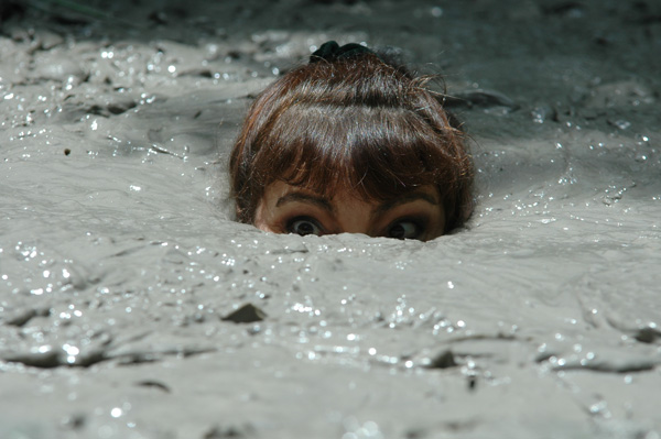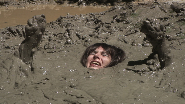 Hannah lays a young woman with a passion for mud and quicksand. Today she is headed for one of her favorite pits, a large clay bog located in front of a large rock she knows as quicksand rock. Standing on the rock she removes her shirt and plunges in feet first. The rest of the scene is Hannah having a very good time, including two submergences. This scene also shows what can be done with a little smoke and mirrors.