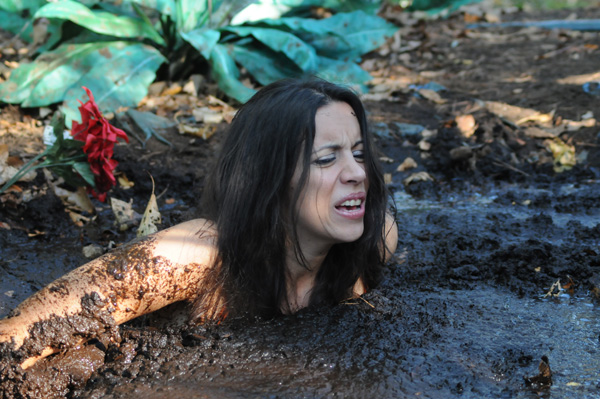 Kerri and Violetta are sisters. Kerri is tired of her sister and is forcing her at gunpoint through the forest toward a pit of quicksand. Violetta fights back at the pit and the gun goes flying but Violetta does fall in. Not long before Violetta goes under Kerri slips and falls in herself. Neither survives. This one features a very nice submergence by Violetta.