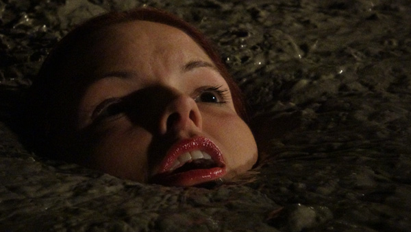 Stefani and Kindle rough up and rob a 104 year old man tottering along a trail. They are interrupted by the barking of dogs and run off. They separate to try to elude the dogs, but Kindle blunders into a clay bog. After she has gone under, Stefani blunders into a peat bog. We could call this Karma but that would imply a different actress. Fred588 plays the old man.