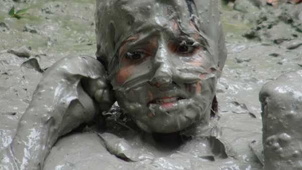 As this one starts out we see Hannah working a video camera and talking to her model Karma, who is not seen. Suddenly, she looks up from the camera and Karma is gone. She looks around, then when she looks back at her camera, the camera is gone. What? Then just as suddenly her own top disappears. Finally she realizes she is dreaming. She gets into the mud pit to try it for herself, having a very good time. She allows herself to go under once, then finally crawls out directly toward a low-angle camera.