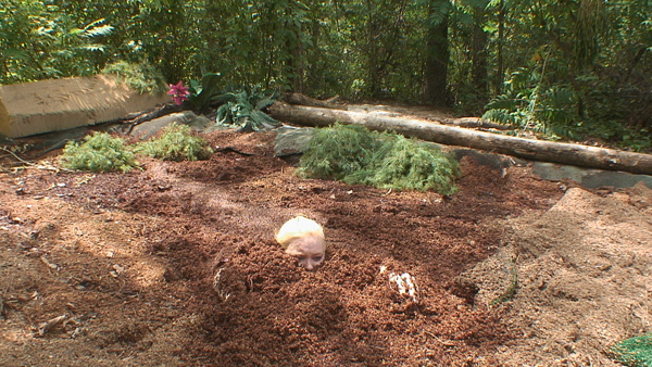 While touring JungleLand, Kindle comes to the outdoor reading room. She decides to read a story. The story involves an outsider about to be punished for violating a tribal taboo by being forced to stand on the surface of a bog. Kindle finds the story stimulating and suddenly finds herself IN the story and standing on the surface of a bog.