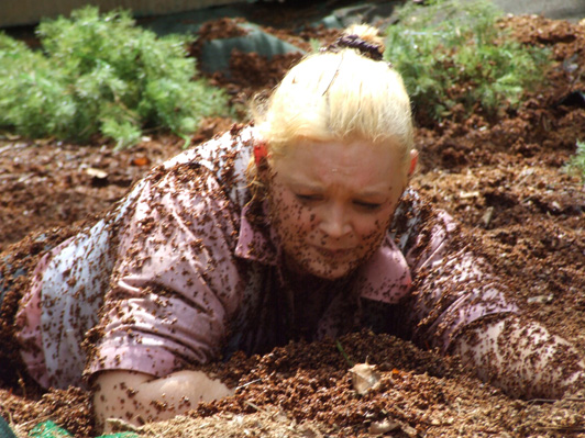 Melissa does her version of a webcam routine making use of a deep clay bog. In this webcam scene, Melissa does somewhat less talking than in most other versions, which gives her more time to enjoy the pleasures of the mud herself.